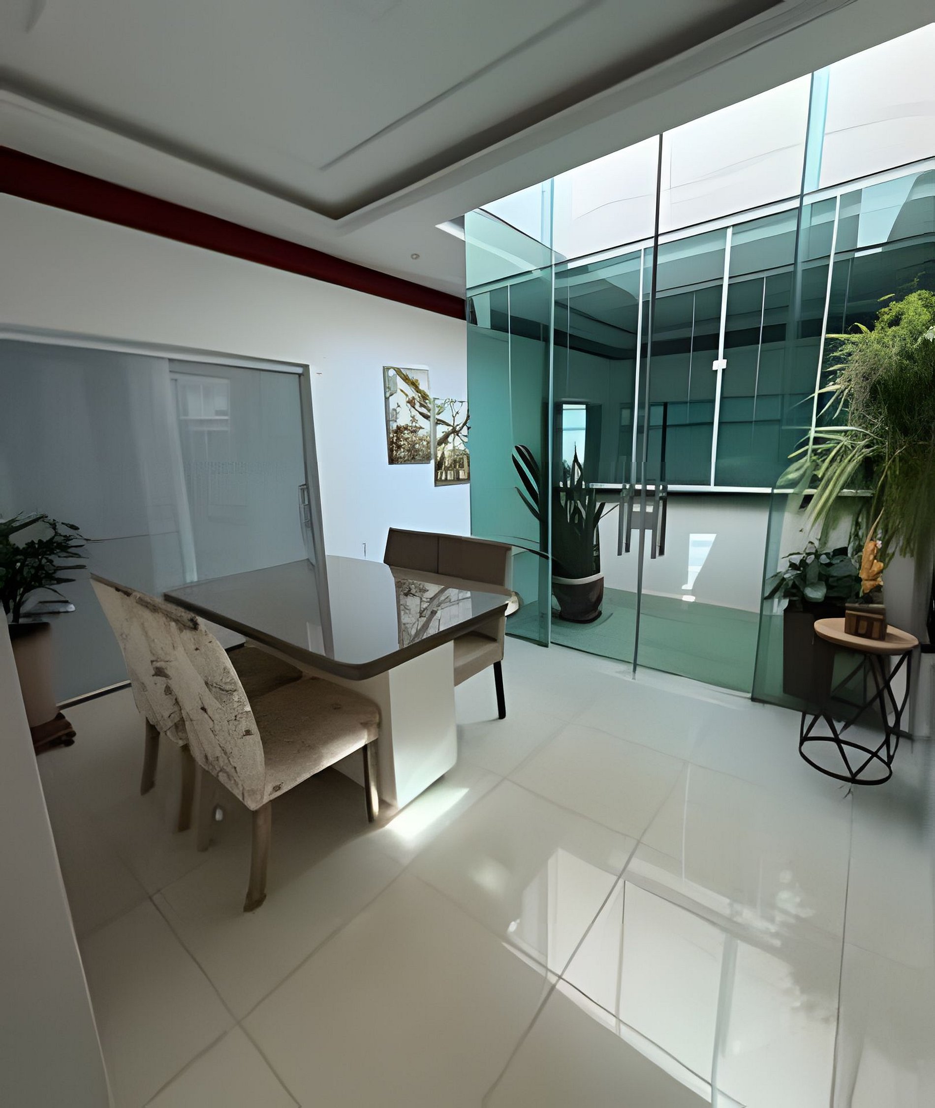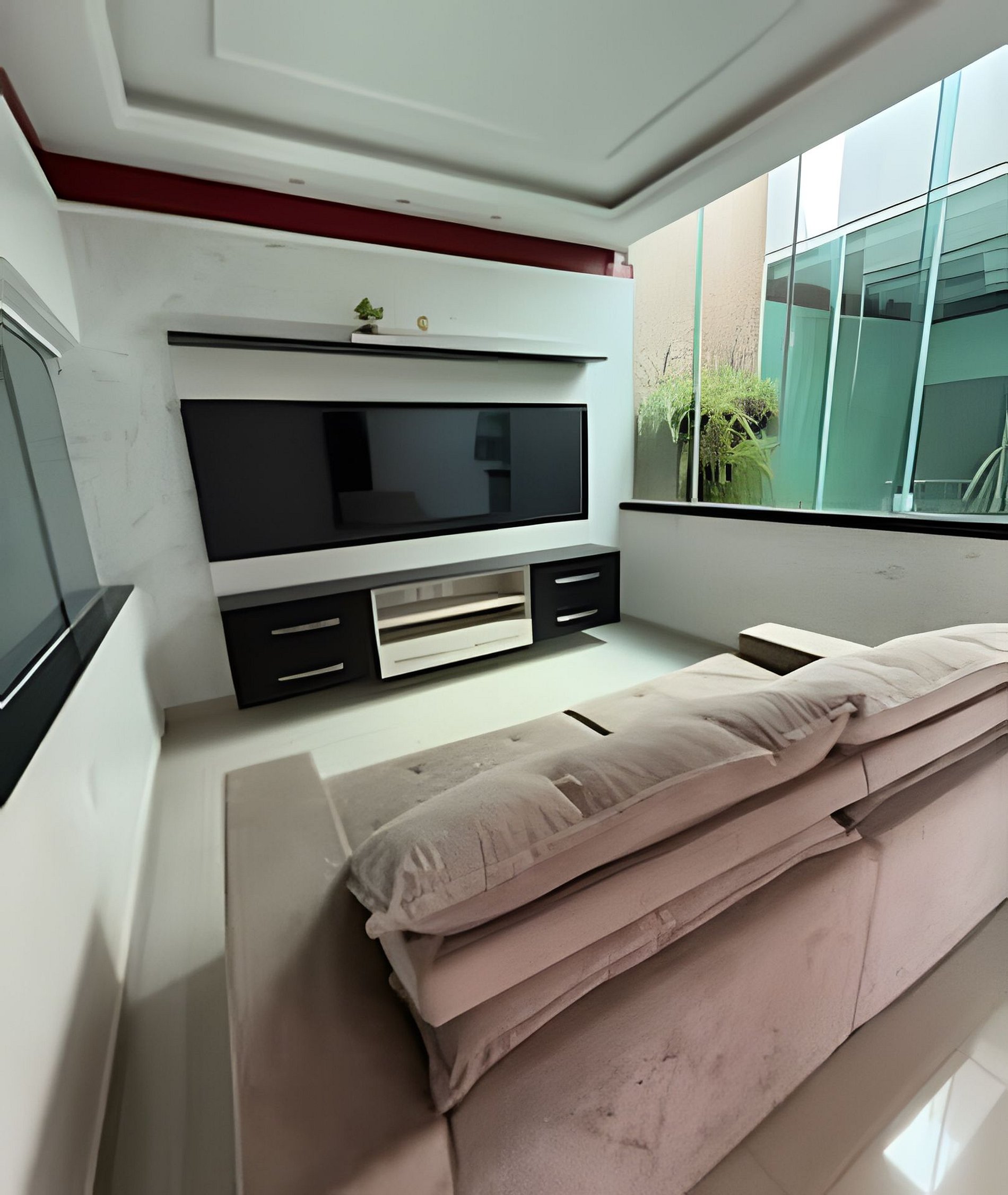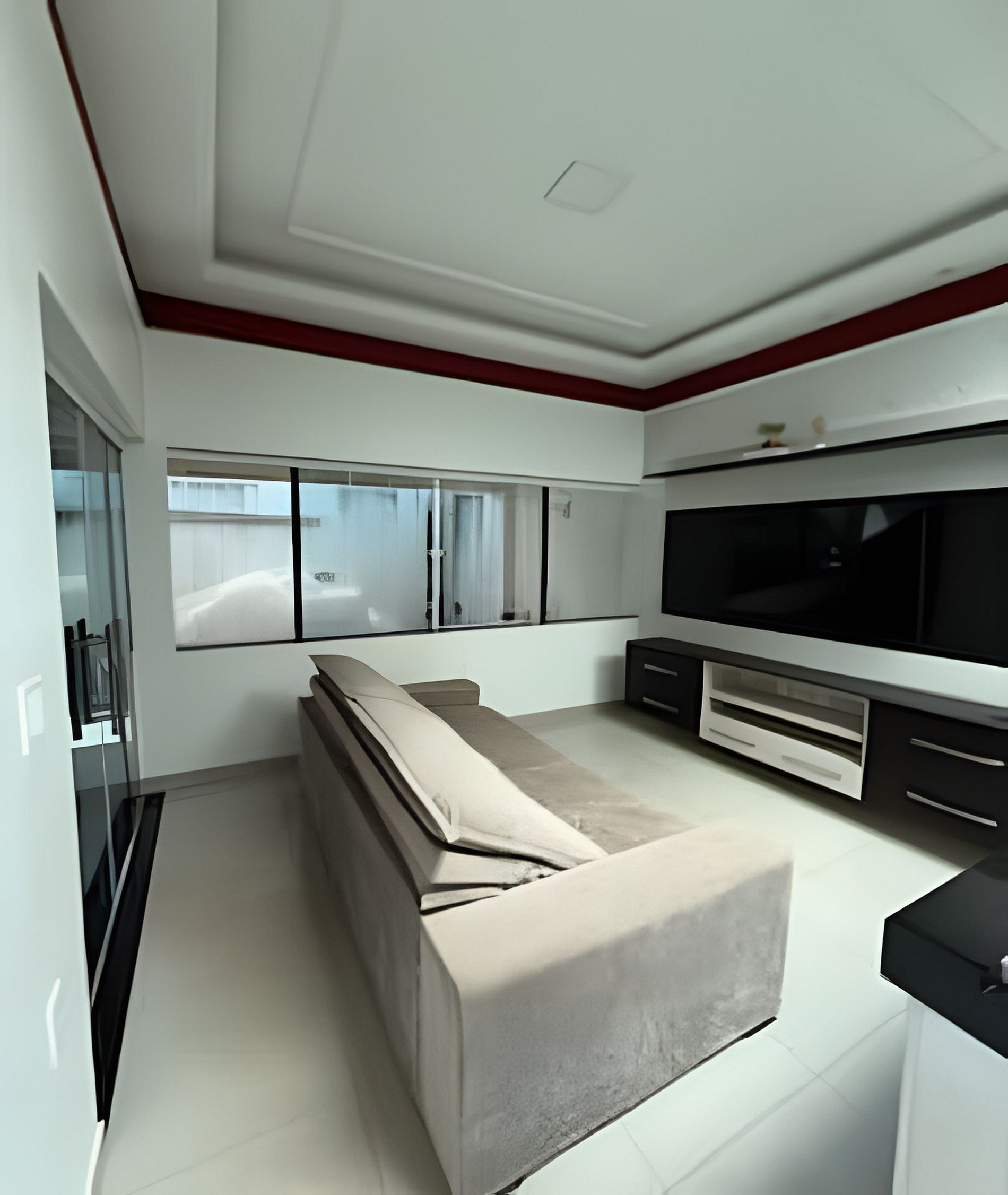 Sala de estar ampla com TV 55” e sofá retrátil, ideal para relaxar após um dia cheio. Três quartos, sendo uma suíte completa c mesa de escritório e armários planejados. Cozinha equipada com todos os utensílios para preparar suas refeições favoritas. Área gourmet com churrasqueira, perfeita para reunir a família e os amigos. Garagem coberta para dois carros grandes + tomada para carro elétrico. Localizada em frente a uma praça arborizada.