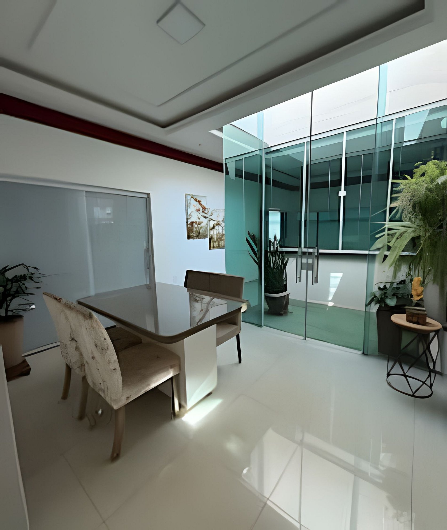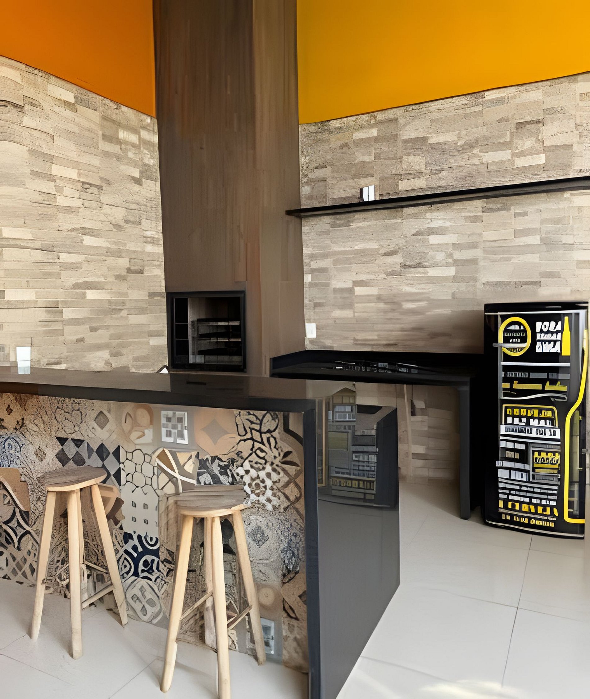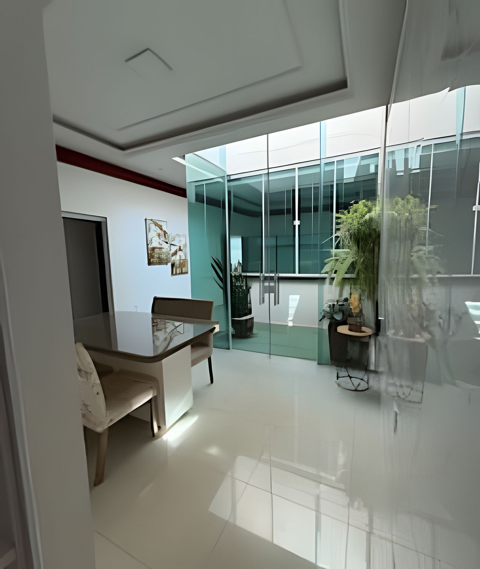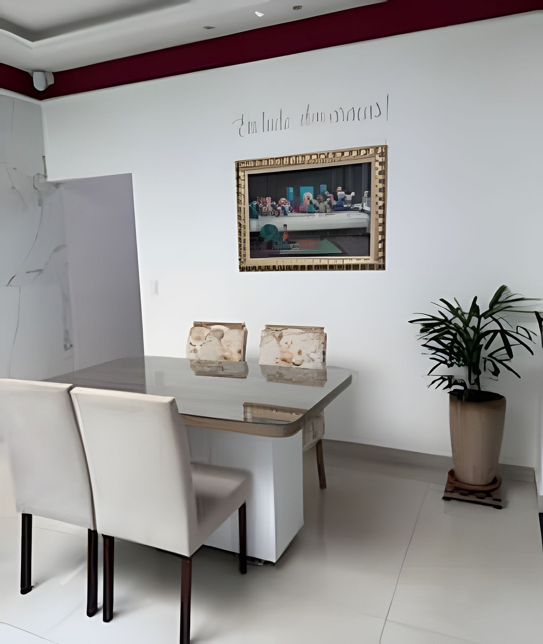 Sala de estar ampla com TV 55” e sofá retrátil, ideal para relaxar após um dia cheio. Três quartos, sendo uma suíte completa c mesa de escritório e armários planejados. Cozinha equipada com todos os utensílios para preparar suas refeições favoritas. Área gourmet com churrasqueira, perfeita para reunir a família e os amigos. Garagem coberta para dois carros grandes + tomada para carro elétrico. Localizada em frente a uma praça arborizada.
